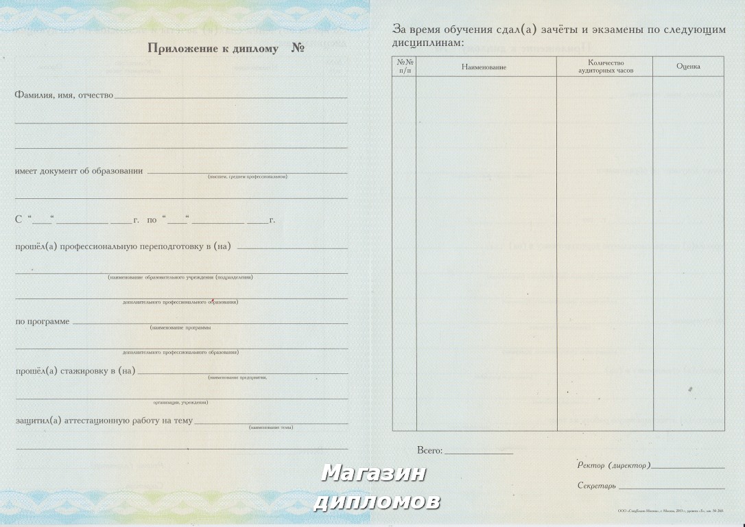 Диплом о профессиональной переподготовке (Гознак, МПФ, Москва 2010 год.), выдавался с 2010 года по 2013 ГОД.